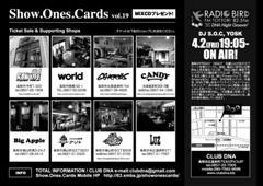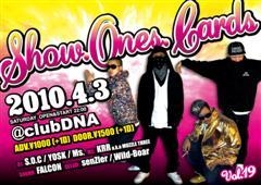 告知失礼します。 【Show.Ones.Cards vol.19】 2010.4.3(SAT)@CLUB DNA OPEN/START 22:00~ 前売り.1000円(1drink) 当日.1500円(1drink) DJ:S.O.C/YOSK/Ms. MC:O×G ILL KID KRR a.k.a MUZZLE THREE SOUND:FALCON DEEJAY:senZler/WILD BOAR ------------------- RADIO BIRD FM TOTTORI 82.5fm DNA Night Groovin' 4.2(FRI)19:05~ DJ S.O.C,DJ EAST8 ON AIR!! ------------------- -チケット取扱店- ・RAW LIFE 鳥取市今町1-320 tel.0857-29-1609 http://rawlife.ocnk.net/ ・world