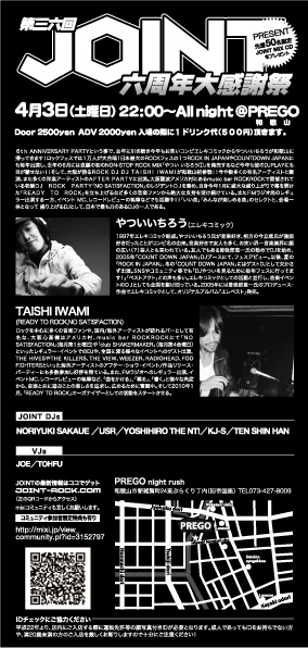 是非!4月3日は、JOINT6周年PARTYで飛び跳ねろ!!