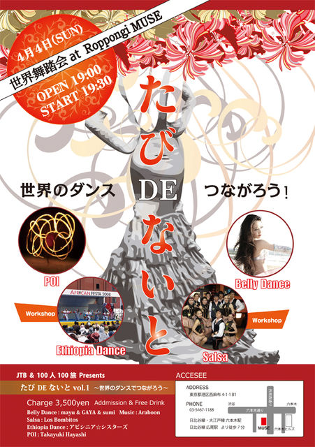 *管理人さんトピ立てさせてくださいませ!! *皆さん、たくさんの方にご協力をお願いしたい(ご覧頂きたい)ので、別コミュにも掲載させてもらってます。ご了承ください 私、東京でサラリーマンやってます、スポーティと申します! あぁーホント旅 でたいーー あの異文化の空気感また味わいたい 海外とかあんまり行ったことないけど、雰囲気かんじたい そんなあなたにまさに吉報!! この度、 『たび de ないと ☆ Vol.1 世界のダンスでつながろう』 やっちゃいます!