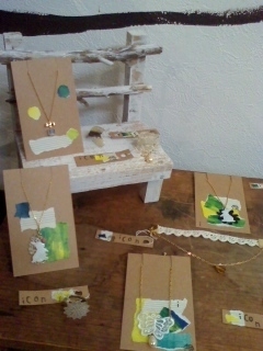 本日よりお茶の子樗(おうち)にて展示しています machiko作のかわいいアクセサリーたちが かわいいお値段でお待ちしておりますよん♪ ちなみにお値段はこんなかんじです ☆ボタンピアス・指輪 600円 ☆ネックレス 700円 ☆ブレスレット 800円 ☆ピアス 800円 ☆イアリング 900円 今回はイアリングも作っているので 穴があいてないけど…と言う方もぜひ! 私もこっそり珈琲豆のエコバッグを作りました もちろん手描き、世界でひとつですよん(笑) あと壁にでかでかと絵を貼っております ちょっと思ってた以上
