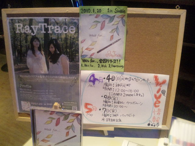2月のMayukaさん(Vo)の凱旋ミニワンマンLIVE(姫路リバーシティ)に続き Aiさん(key)の凱旋ミニワンマンLIVE決定 そんなに広い会場ではないということですので 間近でRayTraceを聴くCHANCEです LIVE情報 日程 : 2010年4月9日(金) 20:00〜 出演予定 : Ray Trace(ワンマン) チケット : 会場: ウツボムーン 〒646-0031 和歌山県田辺市湊998-4 TEL/0739-22-7356 ※他詳細情報等はわかり次第更新いたします ぜひ間近で聴いて欲しい