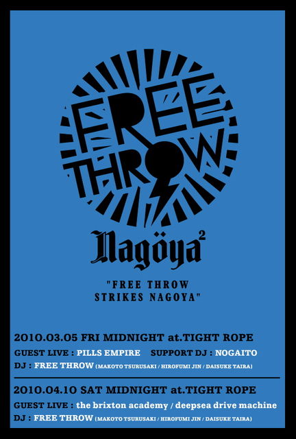 いつもお世話になっております。管理人様告知失礼致します。 FREE THROWは洋/邦/メジャー/インディの垣根を取っ払い、 DJ・Live Act・Audienceによる 等しい三角形を創造するROCK DJ PARTYです! 今回の名古屋はThe Brixton Academy、deepsea drive machine!! どちらのライブも、思わず踊りだしたくなるバンドです☆ どんな曲か気になった方は視聴してみて下さいね♪ まだまだ寒い日が続く4月も踊って温まりましょう^^ 美味しいお酒と素敵な音楽をたくさんご用意してお待ちしております◎ □■FREE THROW■□ http://freeth