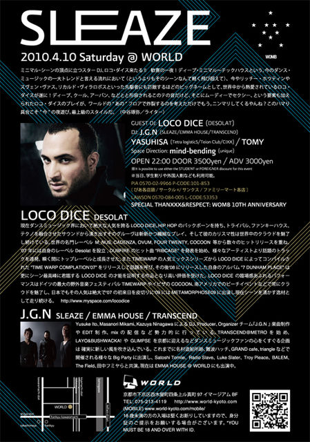 *WOMB 10TH ANNIVERSARYにDJ EMMA出演のため今月はEMMA HOUSEがお休みなります。ごめんなさい。でも、代替案として『LOCO DICE』が登場するスペシャルナイト!!