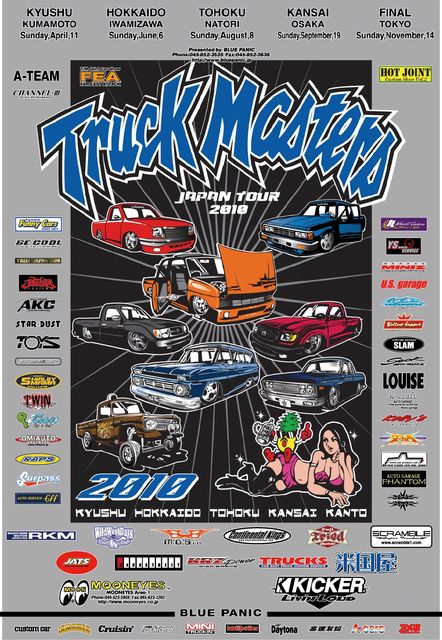 開 催 日 2010年4月11日(日) 9:00 am 〜 3:00 pm 雨天決行 場 所 セキアヒルズ (〒861-0804 熊本県玉名郡南関町セキアヒルズ) Car Show & Swap Meet , チャリティーオークション (会場内での火気の使用は禁止です) 入 場 料 大人¥1000-(小学生以下無料) 駐 車 料 Truck Masters & FEA 専用駐車場は無料です。(他の駐車場はご利用出来ません) エントリー申し込み Truck Masters ・ FEA の各エントリー用紙(参加申込書)に必要