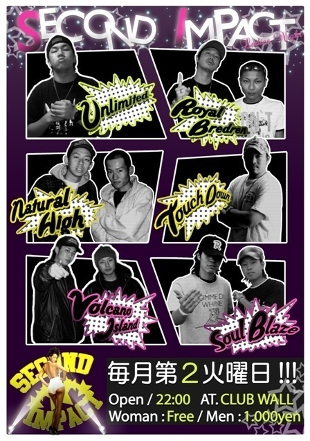 告知失礼します。 4/13(tue)@CLUB WALL 「SECOND IMPACT vol.29」 OPEN/22:00- LADIES/FREE MENS/1000YEN [GUEST SOUND] BLACK BEET from豊橋 [SOUND] ROYAL BREDREN NATURAL HIGH TOUCH DOWN VOLCANO ISLAND SOUL BLAZE [HOST SOUND] UNLIMITED 来月にANNIVERSARYを控えたBLACK BEETを招いてのセカパクvol.29!!!! いつも通り、女の子はFREE!!!!! 早い時間から間違いなくいい曲しかかかってないと思いますんで早い時間から遊びにきてくれると喜びますw まだ来た事ない人も、いつ