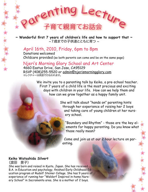 題 目: Parenting Lecture 子育て親育てお話会 ~What children need for the first