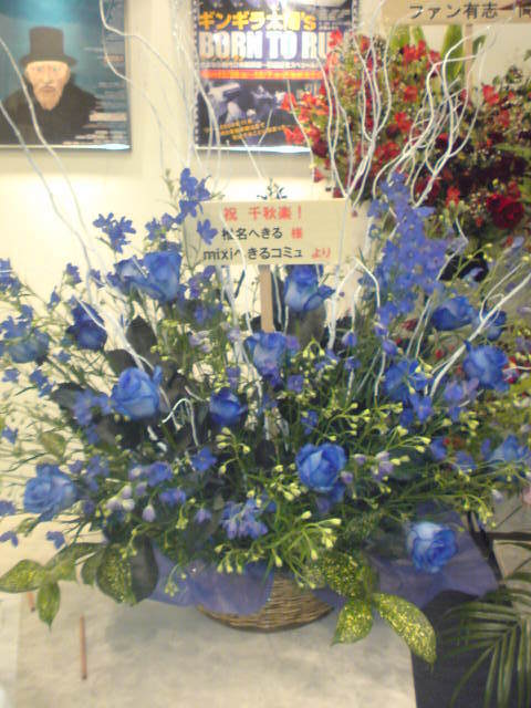 2005年Shibuya-AXのライブ以来5年ぶりの417祭りです、 へきるコミュのみんなで花を贈りませんか? 2008年11月の『「ラムネ」にお花を贈ろう計画』では、お世話になりました。 前回は、会場の関係から、運びやすい楽屋花を贈りましたが、 417祭りの今回、コンサート会場でよく飾られている、スタンド花を贈りたいと思います。 「祝祭 椎名へきる様 mixiへきるコミュ有志一同」 のような看板をつけてもらい、 感謝の気持ちを示したいと思います。 相場が\15,000-ぐらいからありますので、一人\1,000-ずつ出し合っ