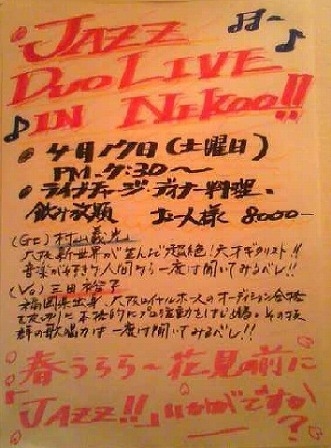 コミュメンバーの我らが「まっちゃん」が店長を務める ワイン&ダイニング【椅子に座ったNEKOO】て、聴き手にとっても、演奏者にとってもベストな環境でのジャズライブを企画して頂きました。 選ばれたミュージシャン、選ばれた聴き手(お客様)、それを添える料理人の強力・協力メンバーで成り立つライブです。 椅子に座った猫〜 犬に座った犬〜 猫に座った椅子〜 ★4月17日(土)19:00〜北新地【椅子に座ったNEKOO】 http://nekoo.jp/index.html 『 椅子猫ライブ 』 vo三田裕子 http://em