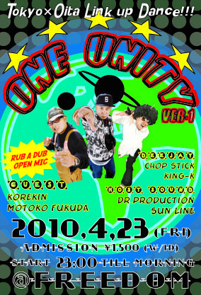 『ONE UNITY』 @FREEDOM 23:00OPEN ¥1,500-+1D DEEJAY CHOPSTICK KING-K HOST SOUND DR-PRODUCTION SUNLINE GUEST KOREKIN MOTOKO FUKUDA