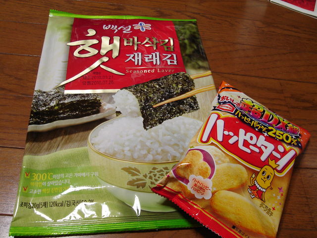 おはようございます。こんにちは。こんばんわ。アニョハセヨww 毎度お馴染み?みやちーでございます さて、今回は最終かもしれない?!そーりょーむりょーシリーズでございます。 【あげます】 今回はお菓子セット(写真?)を送料無料であげます。 中身は韓国海苔とハッピーターンです。(どちらも賞味期限内) 定型外で送ります。送付方法は選択できません。 【韓国語→日本語に翻訳してください】 友人からホットクの素(写真?)をもらいましたが・・・ハングル読めねーー!! 誰か・・・・誰か日本語に翻訳してください!