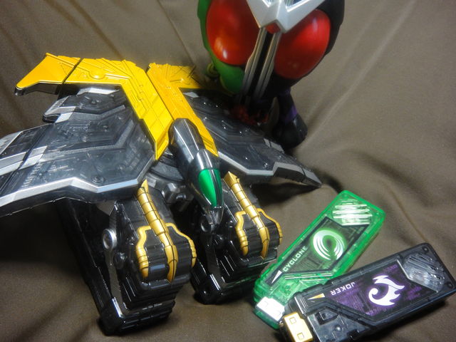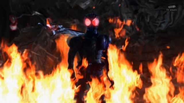 威嚇するように響く警報。 夜闇に黒々とシルエットを滲ませる高層ビルの壁面に、張り付くように近接して飛ぶ戦闘ヘリ。 襲い来るドーパントから逃れても、ヘリから機銃掃射を浴びせられる2人。 『悪魔と相席する勇気、あるかな?』 「サイクロン」と「ジョーカー」のガイアメモリ。 弾かれたタブー・ドーパントの光球弾が、あたりを炎上させる。 燃えあがる炎を背に、揺らめくシルエットを身にまとわらせたWが立つ。 無言の仮面にはめ込まれた赤い複眼が、すべてを映し出していた...... \\\\\\\\\\\\\\\\\\\\\\\\\\\\
