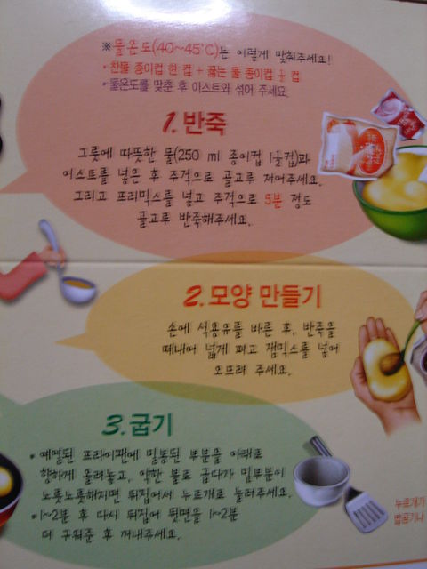 おはようございます。こんにちは。こんばんわ。アニョハセヨww 毎度お馴染み?みやちーでございます さて、今回は最終かもしれない?!そーりょーむりょーシリーズでございます。 【あげます】 今回はお菓子セット(写真?)を送料無料であげます。 中身は韓国海苔とハッピーターンです。(どちらも賞味期限内) 定型外で送ります。送付方法は選択できません。 【韓国語→日本語に翻訳してください】 友人からホットクの素(写真?)をもらいましたが・・・ハングル読めねーー!! 誰か・・・・誰か日本語に翻訳してください!