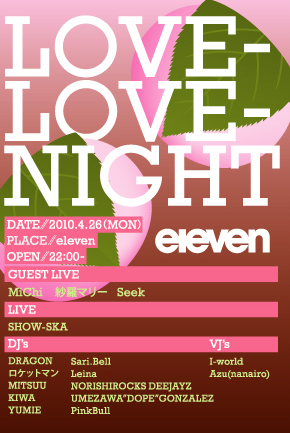 西麻布yellowを代表するイベント「LOVE LOVE NIGHT」が今月からyellow跡地に出現したelevenで復活です!!