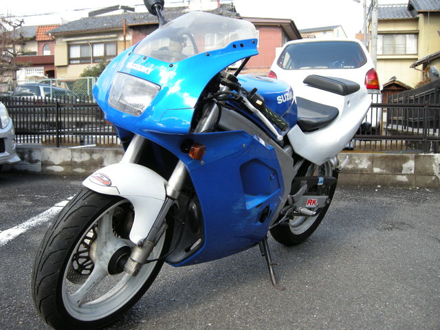 ・メーカー名:SUZUKI ・車名:RG125ガンマ ・年式:NF13A ・車体番号:NF13A- ・2st/4st:2st ・排気量:125cc ・色:青/白 ・自走:不能 ・走行距離:約16000km ・車検/自賠責の有無:無 ・事故歴:中古車につき不明 転倒数回あり ・キズや不具合の有無:カウル割れ ウインカー割れ(使用可) チョーク使用不可(ワイヤーを変えれば使用できます) 片側ミラー無し バッテリー要充電 エンジンは動くと思われる ・カスタム箇所や装備:特に無し ・希望価格:5万円 スーパーカブ90との交換 ・値引きの可否と条件 交渉
