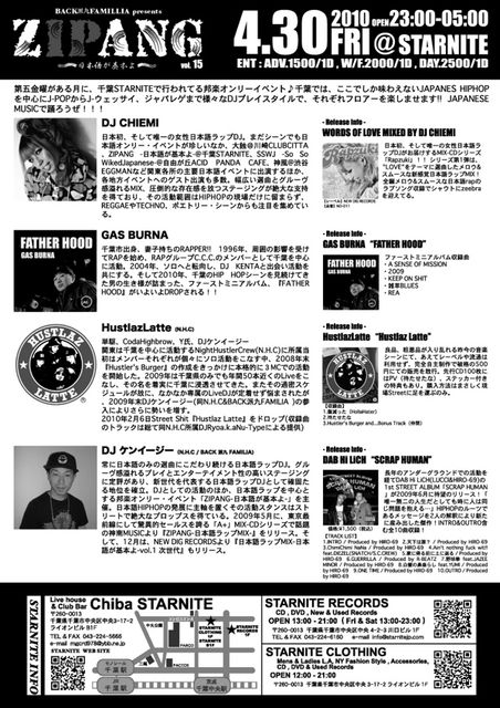 第五金曜がある月に千葉STAR NITEで行われている、千葉県内で唯一のJAPANESE HIPHOPを中心とした邦楽オンリーイベントです!!!