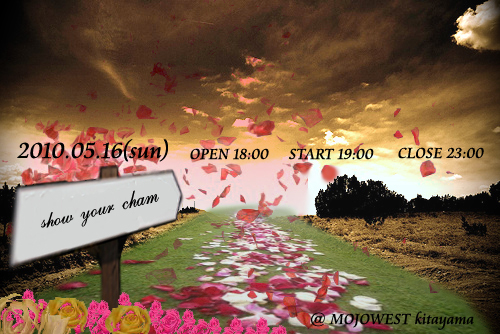 ついに club event開催します 2010年5月16日(日) OPEN⇒18:00 START⇒19:00 CLOSE⇒23:00 テーマ 【show your charm】 〜魅力を高める〜 ※ダンス・歌・ファッションのコラボイベント ※限定でハンドエステブースあり チケット代⇒¥2000+drink 会場⇒MOJO WEST北山 地図⇒http://qr.yahoo.jp/map/14pi2mepgu91rd かつてないクラブイベント 全ての人に happyを 提供します チケットはすでに完売しまし