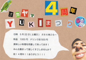 今年もやってきました!岡山ユキ祭り! 料金1000円ドリンク別500円 みんなで集まって自由に楽しくすごそう! 誰でも参加OKウエルカム!