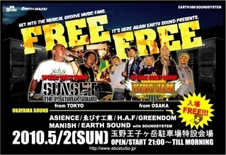 管理人様、ダンス告知失礼いたします。 4月に大盛況だった野外ダンスFREE FREEの第二弾のお知らせです!! 今回はなんと野外ダンスに、東京&大阪からあのサウンドが ゲストでやってきますよー!! そして、入場料はもちろんFREE!!!!! おまけにゴールデンウィーク!! MAAAAAAD!! 【FREE FREE】 入場:FREE 場所:玉野王子ヶ岳駐車場(岡山県玉野市永井2785-8) OPEN/START 21:00〜TILL MORNING 出演サウンド: SPECIAL GUEST ■SUN SET(東