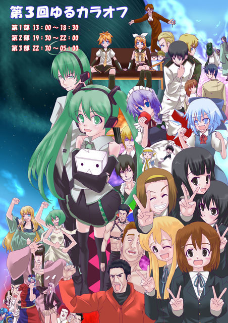 5月1日追記 いよいよ開催です。 当日は待ち合わせ場所か会場に直接きても構いません 何かありましたら携帯かメッセージで連絡ください 4月26日追記 今回歌う曲を予習したい方は、こちらの動画をご覧下さい。 http://www.nicovideo.jp/watch/sm8261138 4月25日 追記 待ち合わせ場所と会場の写真をアルバムに載せましたので、ご確認下さい。 http://mixi.jp/view_album.pl?id=48148752&owner_id=568573 キャンセルに伴う追加募集の仕組みを変更しました。 「キャンセル待ち」のコメントは書かないでください。 キャンセルのコメントが