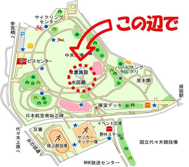 こどもの日は、みんな子供にもどってしゃぼん玉を飛ばそう! ゴールデンウィークの最終日はしゃぼん玉で心を癒しましょう。 たくさん飛ばしたい人、ただ眺めたい人、おひとり様、カップル、ご家族と、ペットを連れて… 空いた時間にふらっとお立ち寄りください。 主催者はしゃぼん玉の知識はありません。 専門家(しゃぼん業界?)の方も是非ご参加ください。 ■場所 代々木公園中央広場の池のほとり(MAP参照) 目印はしゃぼん玉! ■日時 2010年5月5日(子供の日)だいたい13:00〜16:00くらい。 15:00をピークにし