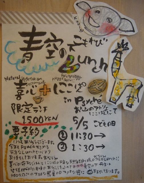 今年も、多気町丹生の坂口久司さんのギャラリー「Atelier Listen」にて5月1日(土)〜 5月9日(日)までExhibition<個展>が開催されます。 http://www.ma.mctv.ne.jp/~blanc/index.html 上記期間中の一日、5/5にまたまた、にこぱんさんのお誘いをいただき出店参加させていただける事になりました。 3度目のにこぱんさんとのコラボレーションです。 いつも通り、坂口久司さんのあの素晴らしいセンスの器に、にこぱん美貴ちゃんの芸術的天然酵母パン、そこへ喜心のお惣菜を添えさせていただき、パンプレートをお出しする予定です。
