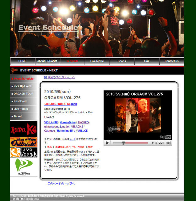 ORGASM VOL.275 SHINJUKU RUIDO K4 open 16:20/start 16:40 adv ¥2,000-/door ¥2,500- + 1drink ¥500- LiveAct - Captude / VIGILANTE / HumanDrive / SHOKEO / ulma sound junction / BLACKS / Humming Bird / VULLCE この日は珍しく、少しメタリックな内容? もちろん、ロックもたくさんだけど。 お客様への様々なサービスを行います!! ・おつまみ、スナック類は全て無料です。ご自由にお食べ下さい。 ・2杯目からのドリンク格安提供! ビール250円 http://chaoticvacation.com/orgasmweb/schedule_next.html#vol275