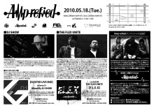Amp-refied vol.3 【日時】 2010.5.18(Tue.) open21:00 close5:00 【会場】 Triangle(アメリカ村・三角公園向かい) ★Amp-refive LIVE 2:00- ※新ユニット“アンプリファイブ”です ☆Ticket☆ 2000yen/1D付き ※『pLRayerのゲスト』でこの値段に!! 《出演者》 ■GUEST DJ SHOW / THE FLEX UNITE ■DJs REE-AGE / NAKAMARO / NAOCO(Amp-refied) / Woody / FUKUMURA(Amp-refied) / 比我(Amp-refied) ■MCs Amp-refive(Amp-refied) / BYG daddy / Journey Boy(Da'identity) / CRD / Douke-MC / TO-MA