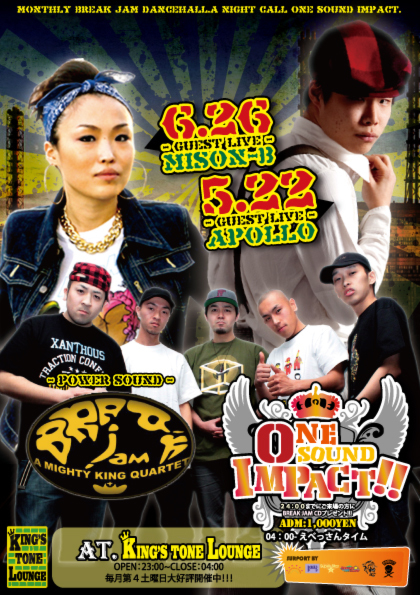 BREAK JAMが一夜をONE SOUNDでお送りするこのDANCE,毎回リピーターが増え益々勢いのいいこのDANCEに次世代筆頭DEEJAY"APOLLO"が登場!!!