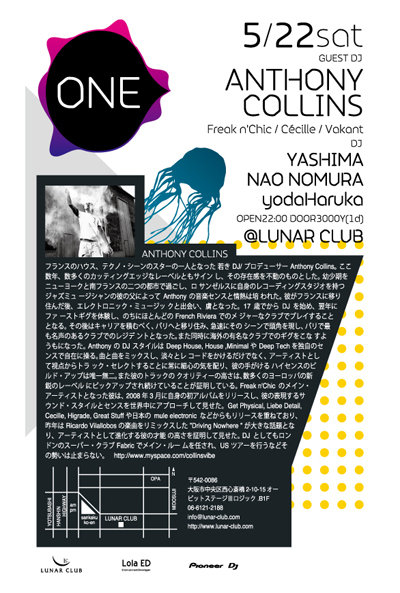05/22(sat) 大阪 ANTHONY COLLINS来日!! ONE @ LUNAR CLUB