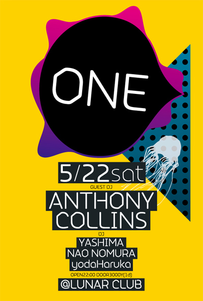 毎回多様な視点からダンスミュージックのカタチを追い求めていくパーティー"ONE" 第1回目となる今回はフランスの若きジーニアス"Anthony Collins"を招聘。 Get Physical,Liebe Detail,Cecille,Higrade,Great Stuff や日本のmule electronicなどからもリリースしている彼のDeep House, House ,Minimal やDeep Tech を独自のセンスで自在に操るプレイに乞うご期待。RESIDENTをつとめるYASHIMA,NAO NOMURA,YODA