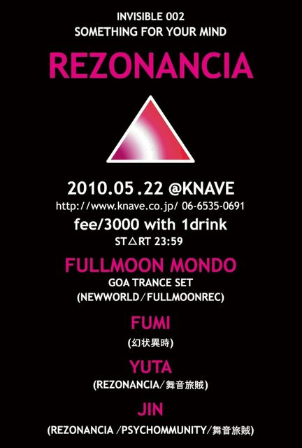 日 時 : 2010.05.22(土) OPEN 22:00 CLOSE 5:00