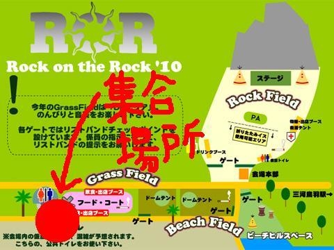 *****5月6日(木)更新*************** みなさんこんにちは(^ω^) RORまでついに1ヶ月切りましたねー!! タイムテーブルも発表されてさらにワクワク^^ あとは晴れることを祈るのみ!!!w 集合写真イベントの詳細もupします! ●22日・23日両日とも同じ時間&場所に集合予定です* 【集合時間】 1回目 11:30〜12:00 2回目 15:10〜15:40 【集合場所】 ビーチフィールド奥の飲食ブース付近の常設公衆トイレ前 上記写真の赤丸の場所です^^ 海をバックに写真撮りましょー!! 【目印】 「ミ
