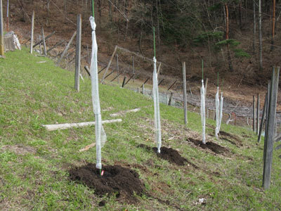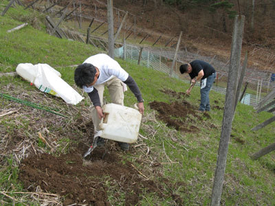 新圃場の苗植え会は4月の週末に随時行います。 とりあえず全部で4〜50本ほどの苗を植える予定です。 ご都合で、1本でも2本でも植えにいらしてください。 参加人数に応じて本数を割り当てます。 3、4日は接木による苗作りが中心です。 当初予定していた甲州、ベーリーAの他に シャルドネ、メルロー、カベルネなどの穂が思いがけず手に入りましたので 台木のある限り遊んじゃいたいと思います。 苗植えは予定本数が完了し次第終了し、防獣ネットの張設などを行います。 作業内容は予告なく変更する場合があります。 【日程】4月