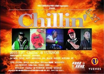 管理人様告知失礼致します 5月27日(木)は渋谷VUENOSにて毎月第四木曜日恒例のChillin'が開催されます レジデントDJには説明不要のDJ WATARAIとDJ NISHIMIAがスタンバイ その他にも間違いないDJ陣とライブ陣が朝までパンパンのフロアをロックし続けます ゲスト希望の方はお名前と人数をそえてメッセージ送って頂ければゲストお取り致します またエントランスにてDJ KT(ケーティー)のゲストのコジローと言って頂ければ同じようにゲスト料金で御入場できるようにしておきますの