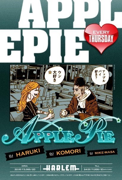 告知失礼致します。 毎週木曜日に渋谷HARLEMで開催しているNO.1 R&B PARTY!! 【Apple Pie】 もはやHARLEMのR&Bパーティーといえば『Apple Pie』と、オーディエンスの誰もが口を揃える事は間違いないでしょう。 今週も、もちろんDJ HARUKI,KOMORI,MIKE-MASAが一晩中フロアをロック!! どんな方でも楽しんでいただけるパーティーですので 是非一度足を運んでみてください もちろんゲストもお取り致します ゲストをお取りいただければ ◆22:00〜00:00 →FREE ◆00:00〜01:00 →1000/1 DRINK ◆01:00〜