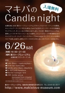 管理人様,コミュニティ参加者の皆様 僭越ながらイベント告知をさせて頂きます。 本日,福島県鏡石町岩瀬牧場内の薪ストーブミュージアムで マキバのCandle nightが開催されます!! 『マキバのCandle night』 日時:2010年6月26日(土) open 16:00〜21:00 close 入場無料 場所:薪ストーブミュージアム (岩瀬牧場フラワーガーデン内事務所棟となり ) 福島県岩瀬郡鏡石町桜町225 http://www.makistove-museum.com ◇cafe :Blanc. ~oyatunojikan~ ◇Drink Bar:barkuraku ◇candle artist :Blanc.mika /kinki
