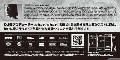 管理人様告知書き込み失礼致します。 四国・高松発上陸です。 ご来場宜しくお願い致します。 ■Kaoru Inoue''Sacred Days'' Pre Release Tour 『Return to the Groove-VOL.11』 4BEAT DANCE MUSIC ENTERTAINMENT PARTY!! http://mixi.jp/view_community.pl?id=4454128 2010.6.19.SAT STRAT 22:00〜 @Sound BAR RAD http://mixi.jp/view_community.pl?id=4111622 香川県高松市鍛冶屋町4-15 アベニュービル4F TEL087.813.0105 ADV(前売り):\2500YEN W/F(フライヤー持参):\3000YEN DOOR(当日):\3500