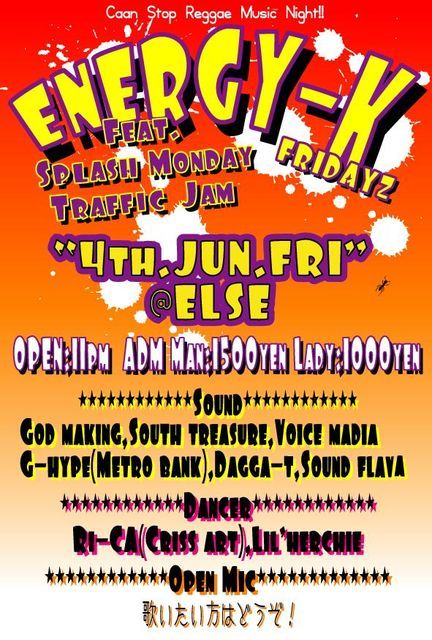 毎月毎週、沖縄市の"CLUB ELSE"を賑わせている"ENERGY-K Fridayz"SPLASH MONDAY"TRAFFIC JAM Thursday" 3Reguler DanceのLink Up