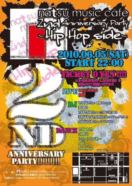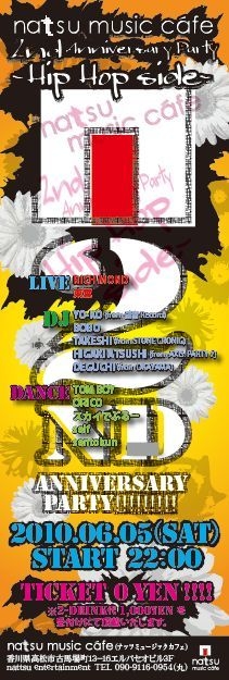 Àè½µ¤Ïnattsu 2nd anniversary party¡ØDRESS¡Ù¤Ë¡¢200̾¤ò±Û¤¨¤ëËÜÅö¤Ë¤¿¤¯¤µ¤ó¤ÎÊý¡¹¤Ë¤´Íè¾ì¤¤¤¿¤À¤¡¢´ò¤·¤¤ÈáÌĤò¤¢¤²¤Ê¤¬¤é¡¢²þ¤á¤Æ¥·¡¼¥ó¤òÀ¹¤ê¾å¤²¤ë¤¿¤á´èÄ¥¤í¤¦¡ª¡ª¤Èµ¤¹ç¤¤¤¬Æþ¤Ã¤¿°ìÌë¤Ç¤·¤¿¤¬... ...º£½µËö¤Ï¡ª¡ª¡Ø-Hip Hop side-¡Ù¤Ç¤¹¡ª¡ª¡ª ¤Ê¤ó¤È¡ª¥¢¥Ë¥Ð¡¼¥µ¥ê¡¼¤È¤·¤Æ¡¢Æþ¾ì̵ÎÁ¡ª¡ª¡ª¡ª ¢¨2-Drink[1,000yen]¤ò¹ØÆþ¡£ ¼¡Âå¤òô¤¦¡¢¸©Æâ¼ã¼êHip Hop Artist¤ÎRICH MOND¤òÃæ¿´¤Ë¡¢ ¥¢¥Ä¤¯¤Æ¿¼¤¤Hip Hop¤ò¶Á¤«¤»¤Æ¤¯¤ì¤ëDJã¤Ï¤â¤Á¤í¤ó¡ª MIC¤òÉð´ï¤Ë¥·¡¼¥ó¤òÙ±¤ëHip Hop Live¤¢¤ê¡ª¡ª ¶»¥¢¥Ä¤¯¤Ê¤ë¤³¤È´Ö