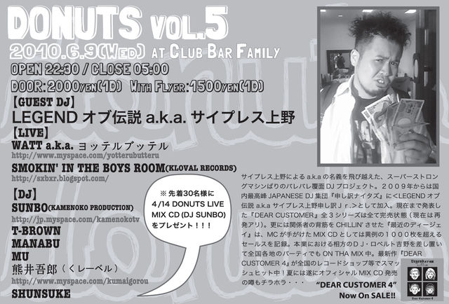 ※先着30名様に「4/14 DONUTS LIVE MIX CD(by DJ SUNBO)」をプレゼントいたします!!!