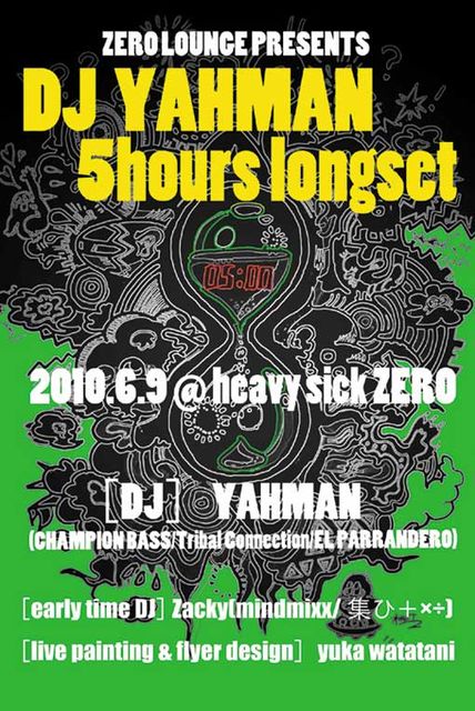 「雑食人生を歩んできた者として、非ジャングルをいかに散りばめるかを念頭に、というか、ジャングルを構成する要素すべてをブチ込む感じで。ジャングルも、もちろんかけつつ。 つまるところ、ジャングルの構成要素の非ジャングルをかけることによって、ジャングルがいかに雑食かがわかったりする、摩訶不思議とリアルの狭間を行き来しつつ、すべての道はジャングルに通づるくらいな超個人的世界観でDJしようと思ってる。」by DJ YAHMAN