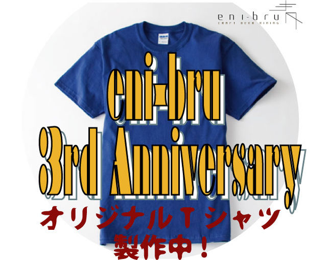 eni-bru 3rd Anniversary オリジナルTシャツ予約販売開始!! お客様からとってもリクエストの多かった、 オリジナルTシャツの制作。 今年は3周年に合わせて、初めて重い腰を上げました(笑) ビア・フェスやイベントに、ぜひ一緒に着ていきましょう! 堺発のデザイン集団「costamilia」が、 老若男女、誰が来てもカッコいい、 スペシャルなデザインを考えてくれていますよ! 完全予約販売! ご予約6/15まで絶賛受付中! S.M.L の3sizeあります。 1枚3,150円(税込) ご予約は、こちらまで。 TEL 072-255-8317(14時〜翌1時まで受付) e-