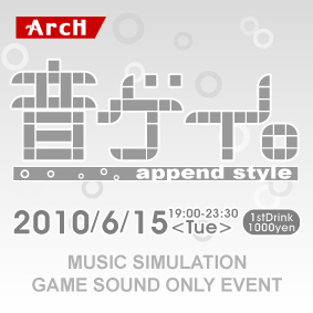 次回、音ゲイ。append styleの日時が決まりました! 6月15日(火)19:00〜23:30 @Club ArcH 1st drink \1,000 以後通常料金 ブチサゲ!!!!!!!!!!!!!!!!!!!! DARKNESS DARKNESS 大事なことなので2回言いました。 今回の音ゲイ。append style テーマはなんと 『ブチサゲ!!』 といってもただ盛り下がるのとは訳が違います! 心にしみる切ないメロディーや、ダークな曲調でみんなのハートをBREAK DOWN! 五月病を引きずっているアナタも、音ゲープレイ中アゲアゲ状態なアナタも楽しめること間違いナシ・