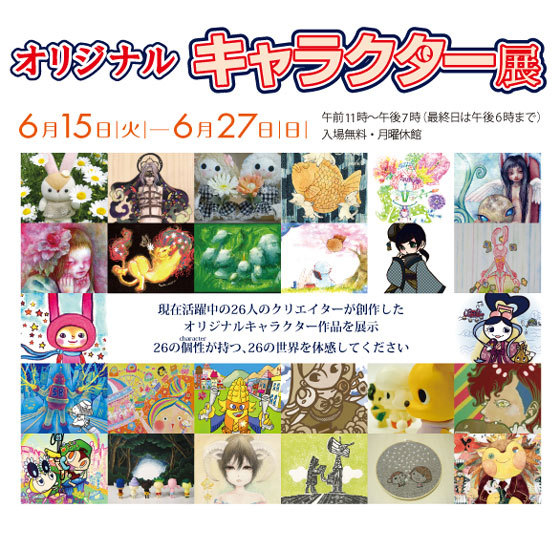【出展者】 沙月/UGYAU/cokets. たら/maika/蒼鬼 うみこ/ユザワエミコ/谷口愛 天津あまぐり/小太刀御禄/ai とも ささきさとみ/鮎川ゆう yukimone/田中新兵/よしみ モダントイズスタジオ/タキタサキ/ににユイチ タケシウチウミ/藤牧由美子/大井友里江 じょぼるぼー/あす菜 【展示期間】 2010年6月15日(火)〜27日(日) 11:00〜19:00(最終日18:00まで) 【オープニングパーティ】 2010年6月15日(火)18:00 〜 20:00 【会場】 下北沢GAoh! B1ギャラリー/2Fスペース 〒155-0032 東京都世田谷区代沢5-35-7 TEL/FAX: 03