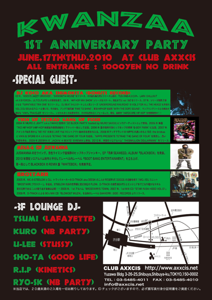 DJ : DJ TSUMI (LAFAYETTE) / DJ KURO (NB PARTY) / U-LEE (STUSSY) / SHO-TA (GOOD LIFE) /