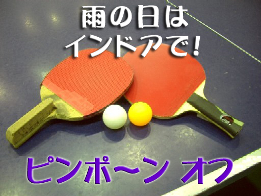 『雨の日はインドアで!』 何十年ぶりに「卓球」したいと思いませんか? 日時 : 6月17日(木) 場所 : 豊中市立 千里体育館 http://www.spotoyo.com/senri/caution/caution.html 時間 : PM 2:00?〜 料金 : 300円? シューズ(内履き用)のみ持参 ラケット類は貸してくれます。 ※千里中央 or 北千里 まで来られたら、車で送迎いたします。 お気軽参加を、心からお待ちしております。