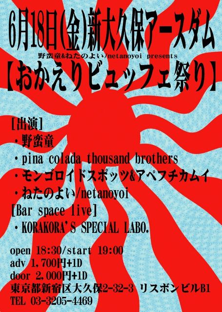and SURPRISE GUEST当日¥2,500 前売¥1,500 (別途 1 DRINK)