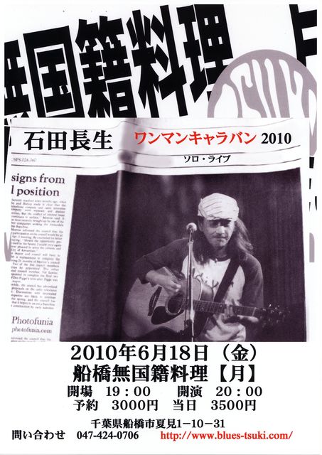 4月25日“月鱒船上お別れ会”で熱いステージを展開した 石やんこと石田長生のライブが決定しました。 半年ぶりの【月】でのライブは、月鱒・野口徹への想いがつまった 特別なライブになるハズです。 6月18日は【月】に集合ですヨ!