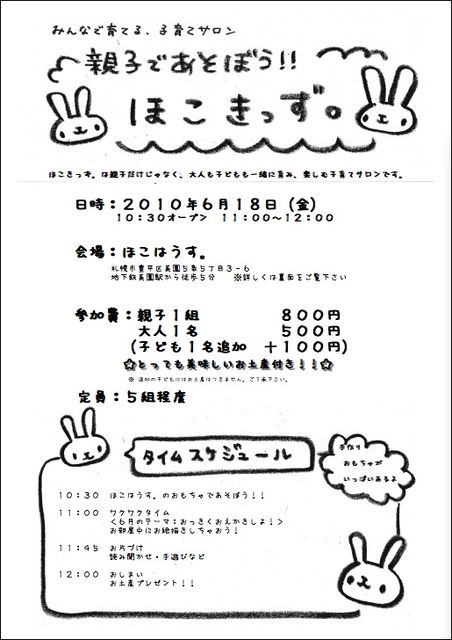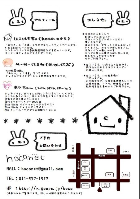 お待たせしました!! ほこきっず。再開ですよ テーマ:おっきくおえかきしよ! 大きな部屋の壁や窓(!!)に思い切りお絵描きしよう!! 日時: 6月18日(金) 10:30オープン 11:00〜12:00 会場: ほこはうす。 参加費: 親子1組(大人1名・子ども1名) 800円 大人1名 500円 子ども1名追加につき +100円 ※追加のお子様にはお土産はつきません。ご了承下さい。 定員: 5組程度 ご注意: クレヨンなどの画材を使用致します