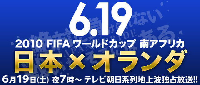 第八回 棺桶カラオケ 番外編 2010 FIFA ワールドカップ 南アフリカ大会第二次 観戦オフ ◆20時30分からノンアルコールドリンク飲み放題+持ち込みOKの朝まで3500円 の格安観戦ツアー ◆ハッチ『特撮アニソン玄人BARるちゃの大画面テレビで観戦しますよ〜 もうサッカーとかわからない奴もとりあえず日本応援しに来いよwwwwww(マスタ ーも解ってないしwwwwww)』 ◆◇観戦予定試合◇◆ 6月19日(土) 【オランダ×日本】 試合開始 : 20:30 / 試合会場:ダーバン スタジアム 放送開始・終了: 20:10〜22:40(